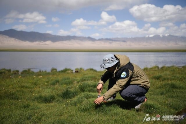 科考團隊負責人張發(fā)起正在采集植物標本。中國科學院西北高原生物研究所提供