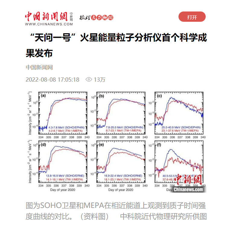 8月8日,記者從中科院近代物理研究所獲悉,由澳門科技大學(xué)、中國地質(zhì)大學(xué)(北京)、中科院近代物理研究所、蘭州空間技術(shù)物理研究所、中國科學(xué)技術(shù)大學(xué)、美國阿拉巴馬大學(xué)亨茨維爾分校和中科院國家空間科學(xué)中心組成的研究團(tuán)隊(duì)利用天問一號(hào)火星能量粒子分析儀于近期獲得了首個(gè)科學(xué)成果,研究討論了基于該載荷在地火轉(zhuǎn)移軌道中觀測(cè)到的一個(gè)太陽高能粒子事件。