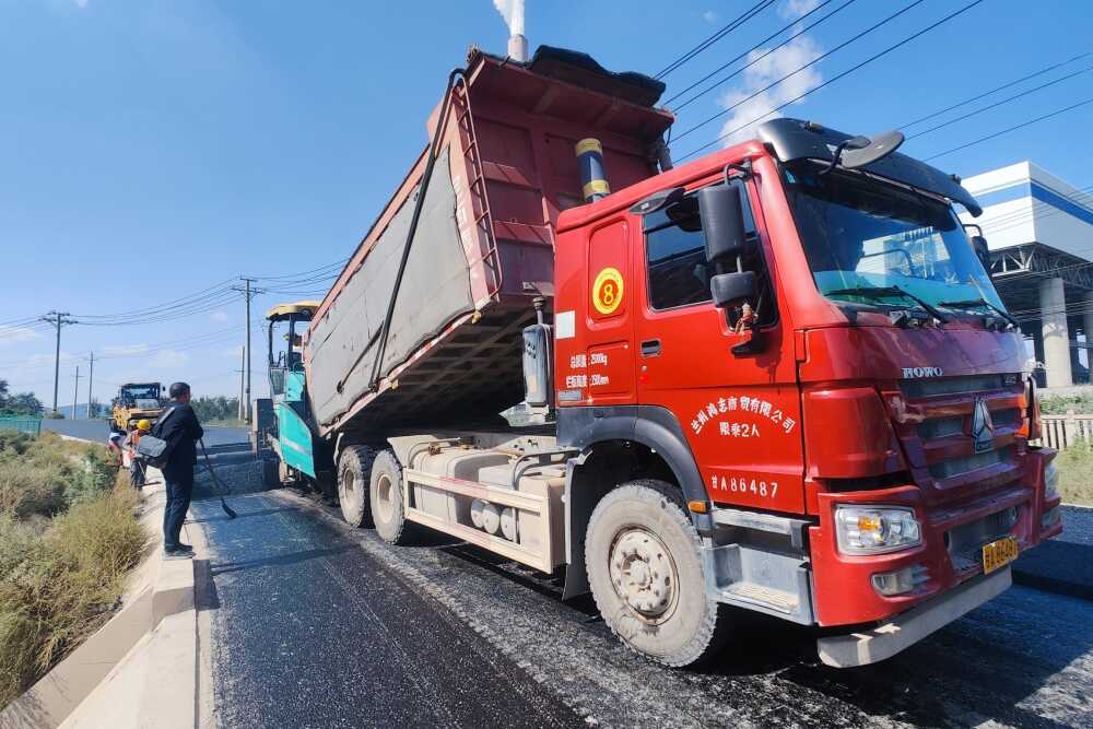 在甘肅省科技重大專項(xiàng)(創(chuàng)新聯(lián)合體)等項(xiàng)目支持下,唐志誠(chéng)團(tuán)隊(duì)從退役風(fēng)機(jī)葉片材料結(jié)構(gòu)和理化性質(zhì)出發(fā),利用退役風(fēng)機(jī)葉片質(zhì)輕、強(qiáng)度高、耐腐蝕等特點(diǎn),通過(guò)物理破碎和化學(xué)處理方式,將退役風(fēng)機(jī)葉片改性后在瀝青混合料和水泥混凝土中探索應(yīng)用。在與甘肅路橋善建科技有限公司的合作下,2024年9月,退役風(fēng)機(jī)葉片改性瀝青混合料在甘肅蘭州清傅公路輔路上得到了示范性鋪設(shè)。