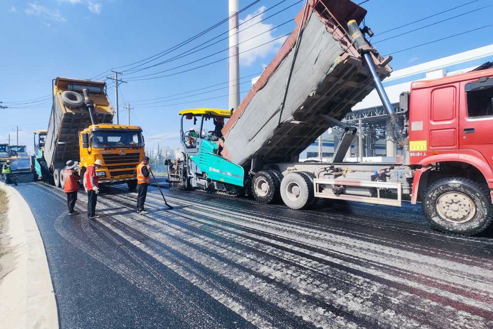 2024年9月21日,利用新技術(shù)研發(fā)的退役風(fēng)機(jī)葉片改性瀝青混合料在路面上得到鋪筑和示范。受訪者供圖