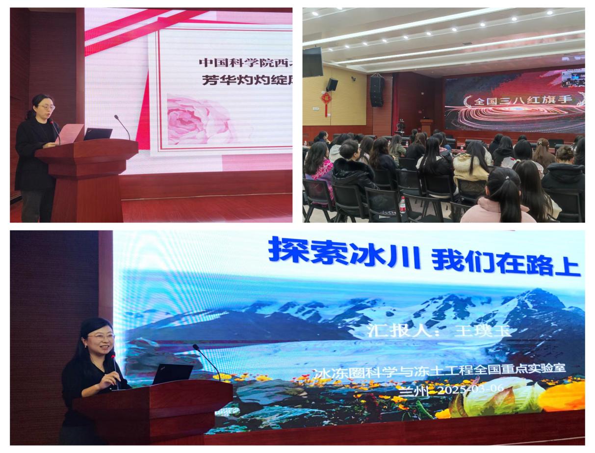 3月6日,婦委會(huì)組織女職工、女研究生集中觀看了中國(guó)科學(xué)院“搶占科技制高點(diǎn) 巾幗建功助攻堅(jiān)”先進(jìn)事跡報(bào)告會(huì),聆聽(tīng)了2024年度全國(guó)三八紅旗手、全國(guó)巾幗文明崗、中央和國(guó)家機(jī)關(guān)三八紅旗手等獲獎(jiǎng)代表的感人事跡,感悟新時(shí)代女性科技工作者勇攀高峰的拼搏精神。隨后,婦委會(huì)主任孟憲紅研究員主持召開(kāi)了西北研究院專題報(bào)告會(huì),紀(jì)委書記袁小華代表領(lǐng)導(dǎo)班子向全體女職工致以節(jié)日問(wèn)候和美好祝愿,感謝大家為西北研究院科技創(chuàng)新事業(yè)作出的重要貢獻(xiàn),并鼓勵(lì)全體女職工以更加昂揚(yáng)的精神面貌,在各自崗位上繼續(xù)拼搏奮斗。青年女科學(xué)家王璞玉研究員以《探索冰川 我們?cè)诼飞稀窞轭},分享了自己和團(tuán)隊(duì)扎根冰川的科研往事,為大家?guī)?lái)了一場(chǎng)科學(xué)與情懷交織的精神盛宴。
