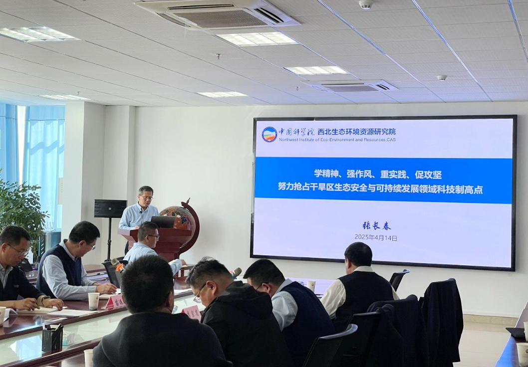 4月14日,中國科學(xué)院西北生態(tài)環(huán)境資源研究院干旱區(qū)生態(tài)安全與可持續(xù)發(fā)展全國重點實驗室(簡稱干旱區(qū)生態(tài)安全重點實驗室)黨總支召開黨員大會暨深入貫徹中央八項規(guī)定精神學(xué)習(xí)教育專題學(xué)習(xí)會。西北研究院院長馮起、黨委書記張長春應(yīng)邀參加會議并作指導(dǎo)。副院長、黨總支書記李宗省和黨總支委員、六個黨支部全體黨員參加會議。會議由黨總支組織委員左小安主持。