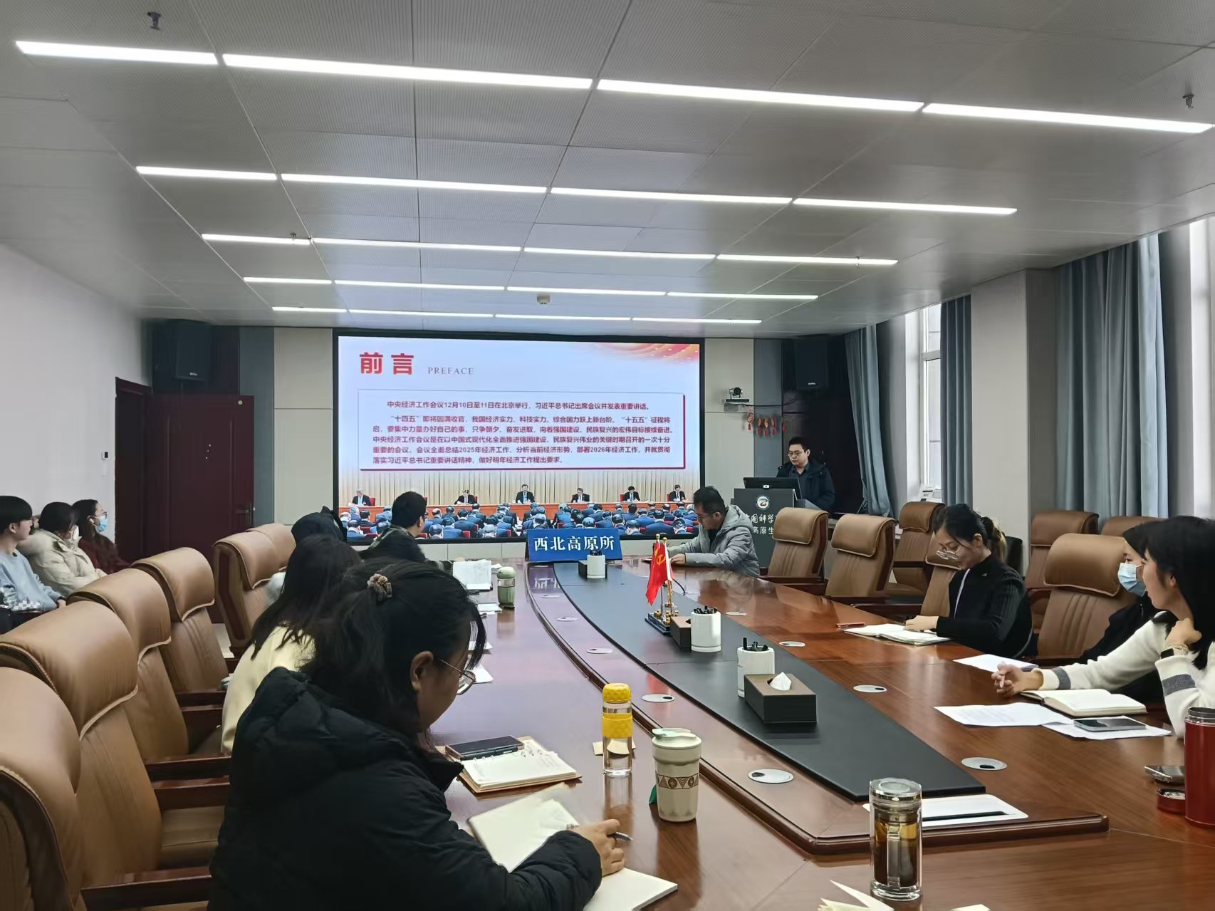 12月18日下午,中國科學(xué)院西北高原生物研究所農(nóng)業(yè)中心黨支部召開黨員大會,深入學(xué)習(xí)貫徹2025年中央經(jīng)濟(jì)工作會議精神。大會由支部書記陳文杰主持,支部全體黨員、發(fā)展對象及入黨積極分子參加。