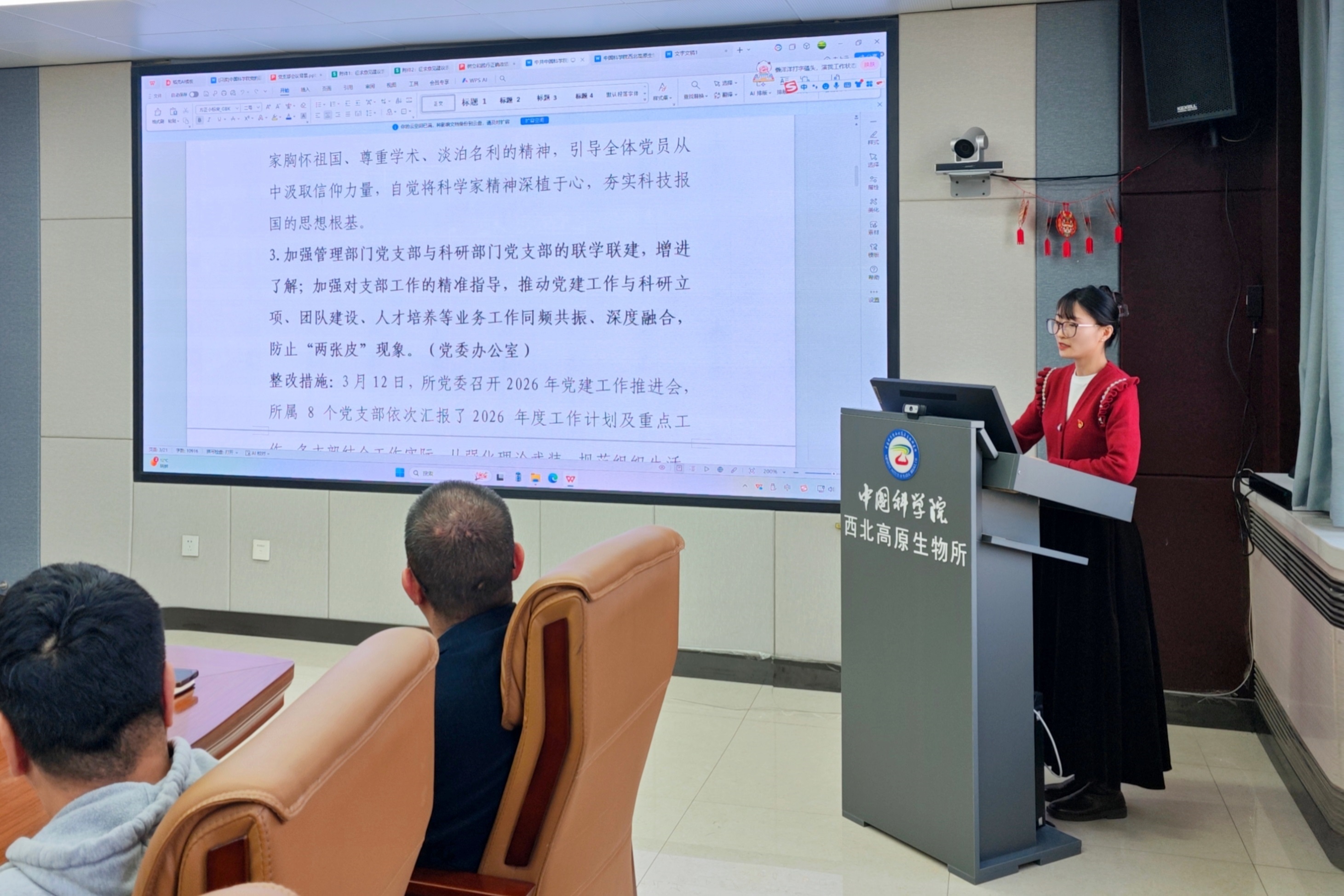 宣傳委員董亞慧通報了《中共中國科學院西北高原生物研究所委員會2025年度黨員領導干部民主生活會征求意見反饋》,重點圍繞理論武裝提升、管理機制創(chuàng)新、人才隊伍建設、基礎設施改善等方面問題進行了反饋。