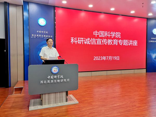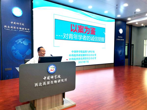 為深入開展學(xué)習(xí)貫徹習(xí)近平新時代中國特色社會主義思想主題教育,進一步加強研究所科研誠信建設(shè),教育引導(dǎo)科研人員和研究生遵守科研規(guī)范、增強誠信自律,共同傳承中國科學(xué)院優(yōu)良傳統(tǒng)。7月19日下午,中國科學(xué)院科研誠信宣傳教育專題講座在中國科學(xué)院西北高原生物研究所舉行。中國科學(xué)院蘭州分院紀(jì)檢組組長、分黨組成員、系統(tǒng)單位紀(jì)委書記吳建剛,中國科學(xué)院巡視辦整改督辦室負(fù)責(zé)人程海濤,中國科學(xué)院西北高原生物研究所和青海鹽湖研究所的所領(lǐng)導(dǎo)、科研人員、特別研究助理、在學(xué)研究生等100余人參加報告會。報告會由西北高原所所長陳世龍主持。