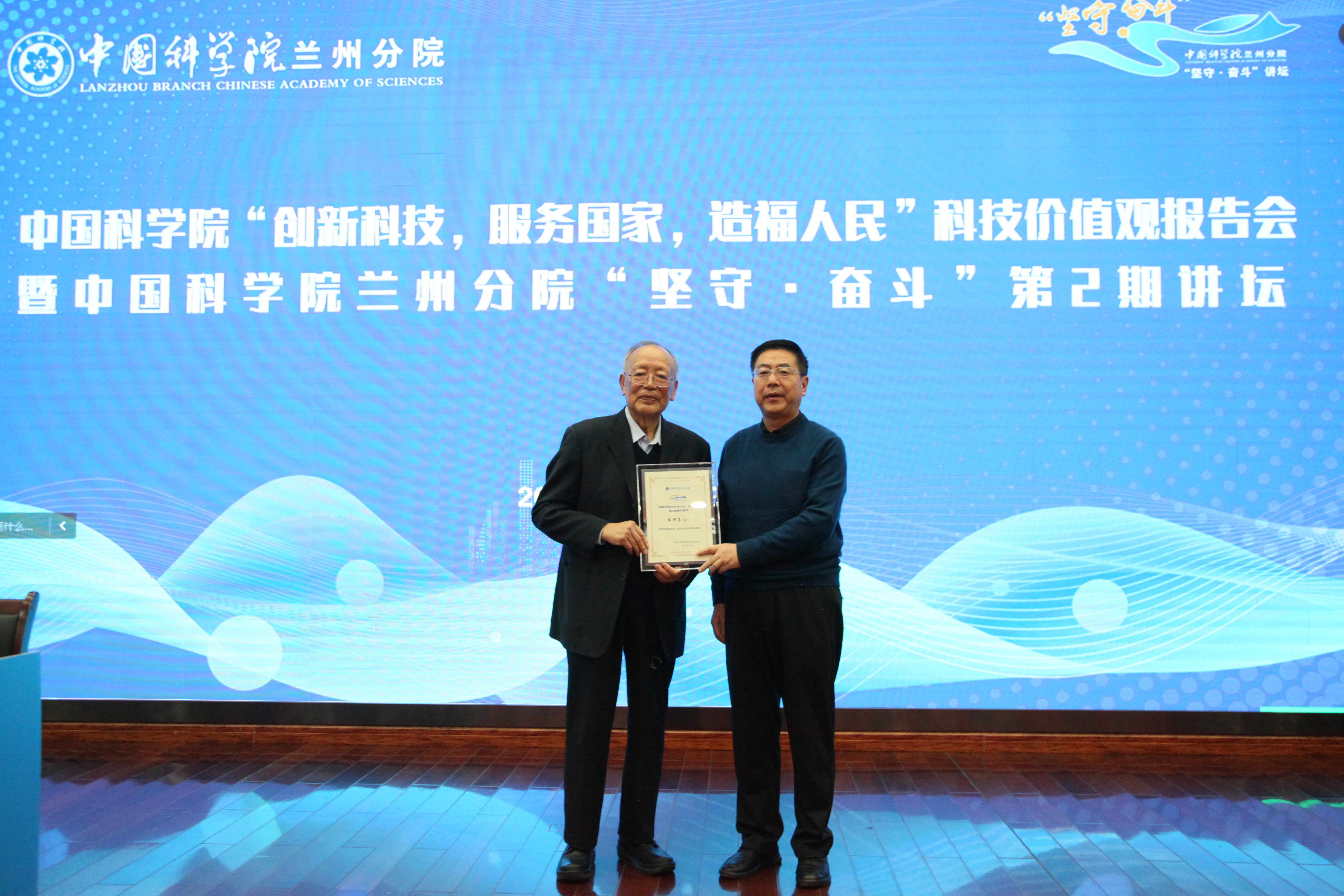 1129日,中國科學院“創(chuàng)新科技、服務國家、造福人民”科技價值觀報告會暨中國科學院蘭州分院“堅守·奮斗”第2期講壇在蘭州化學物理研究所舉行,報告會邀請材料化學和潤滑材料專家、中國工程院院士薛群基作《讓我們一起學習科學家精神》專題報告。