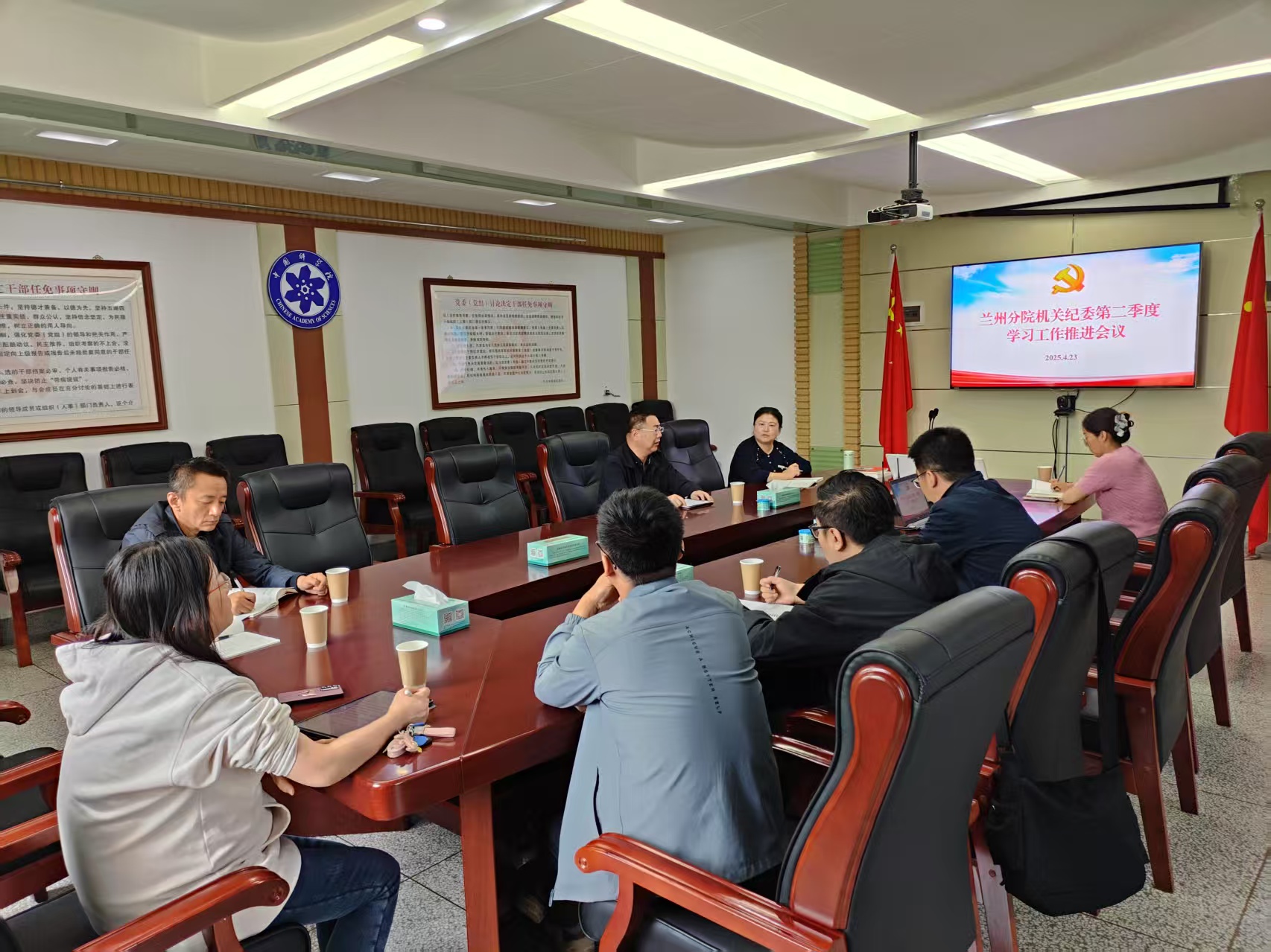 4月23日,中國科學院蘭州分院機關(guān)紀委召開二季度工作學習推進會議。蘭州分院紀檢組組長、機關(guān)黨委書記吳建剛,機關(guān)紀委委員、各黨支部紀檢委員及機關(guān)紀委辦公室相關(guān)人員參加會議。