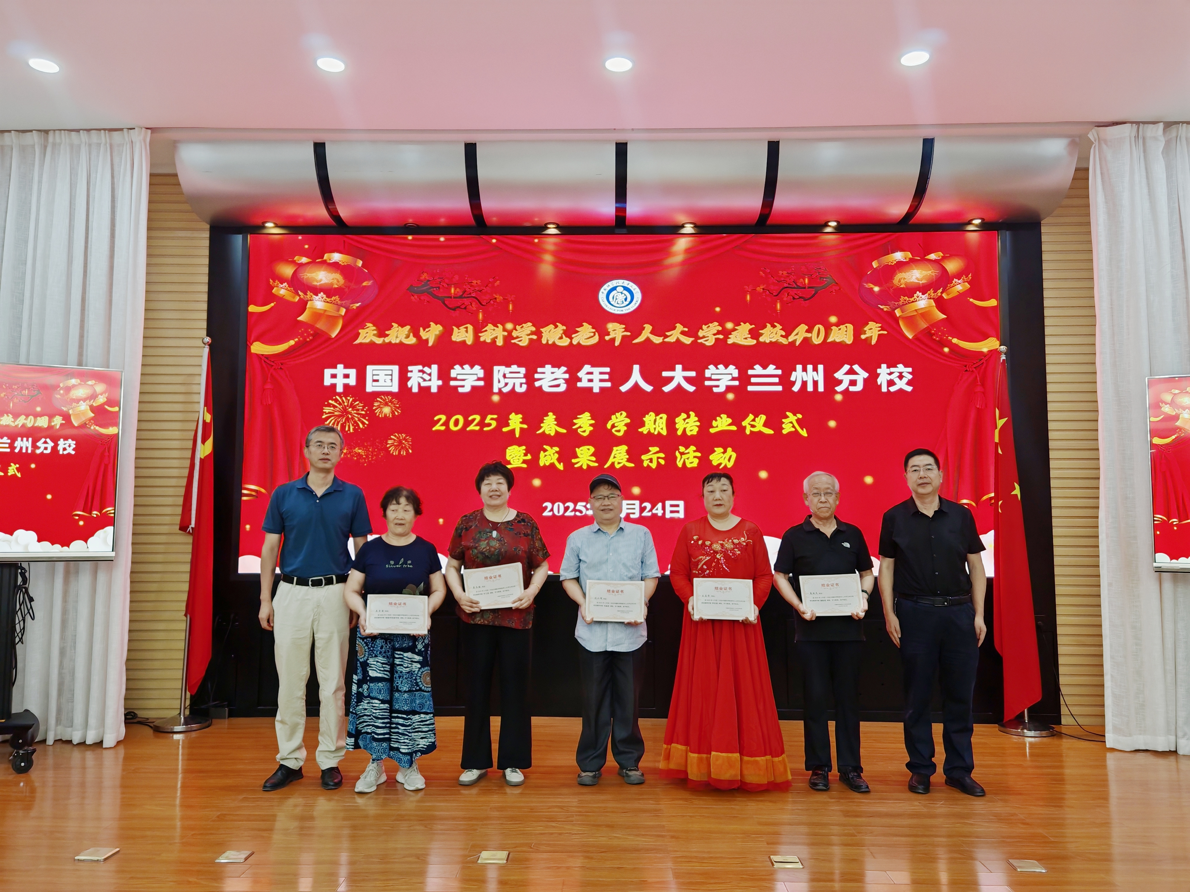 為慶祝中國科學院老年人大學成立40周年,激勵引導離退休老同志為搶占科技制高點增添正能量、作出新貢獻,7月24日上午,中國科學院老年人大學蘭州分校舉辦“創(chuàng)新發(fā)展,再譜新篇”教學成果展演活動。蘭州分院分黨組成員、紀檢組組長吳建剛,分院系統(tǒng)蘭州地區(qū)各單位離退休工作負責人、工作人員、授課教師和老年大學學員等50余人參加活動。