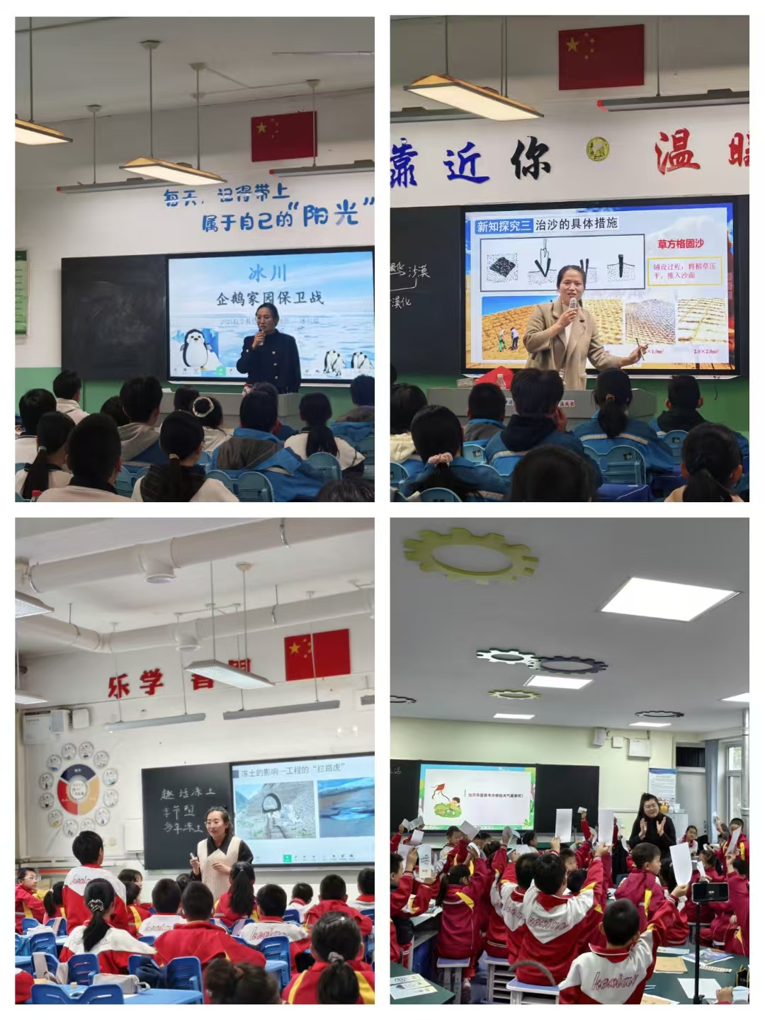 實(shí)踐創(chuàng)作環(huán)節(jié)則強(qiáng)調(diào)了直觀易懂和學(xué)科優(yōu)勢。教師們在雙導(dǎo)師的指導(dǎo)下,圍繞冰川、凍土、沙漠和大氣四個(gè)方向進(jìn)行了教學(xué)案例的創(chuàng)作,并將創(chuàng)作成果帶入中小學(xué)課堂進(jìn)行科學(xué)公開課展示,獲得一致好評。
