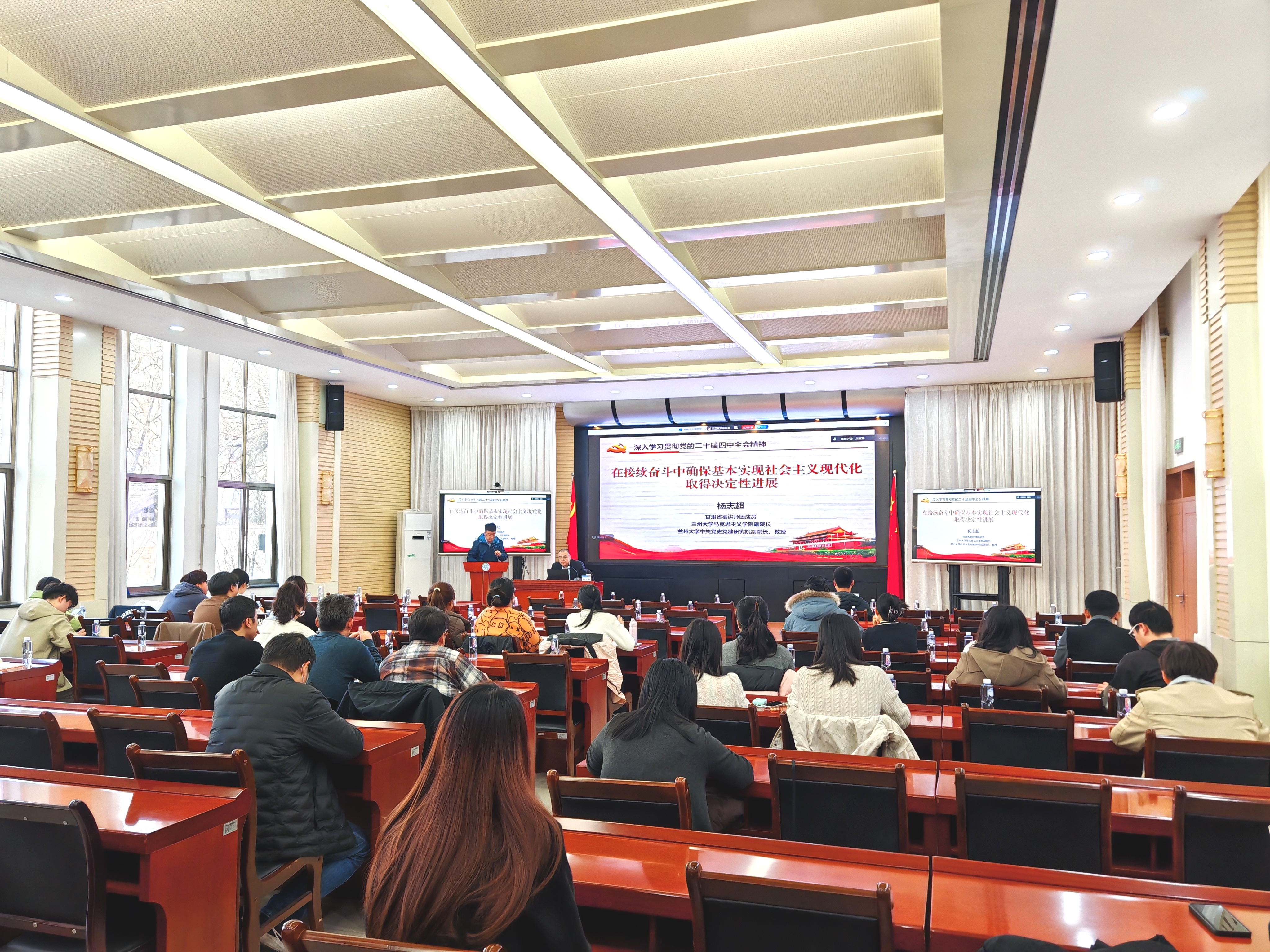 會(huì)議邀請(qǐng)?zhí)m州大學(xué)馬克思主義學(xué)院副院長(zhǎng)、教授楊志超作《在接續(xù)奮斗中確?;緦?shí)現(xiàn)社會(huì)主義現(xiàn)代化取得決定性進(jìn)展》專題報(bào)告。