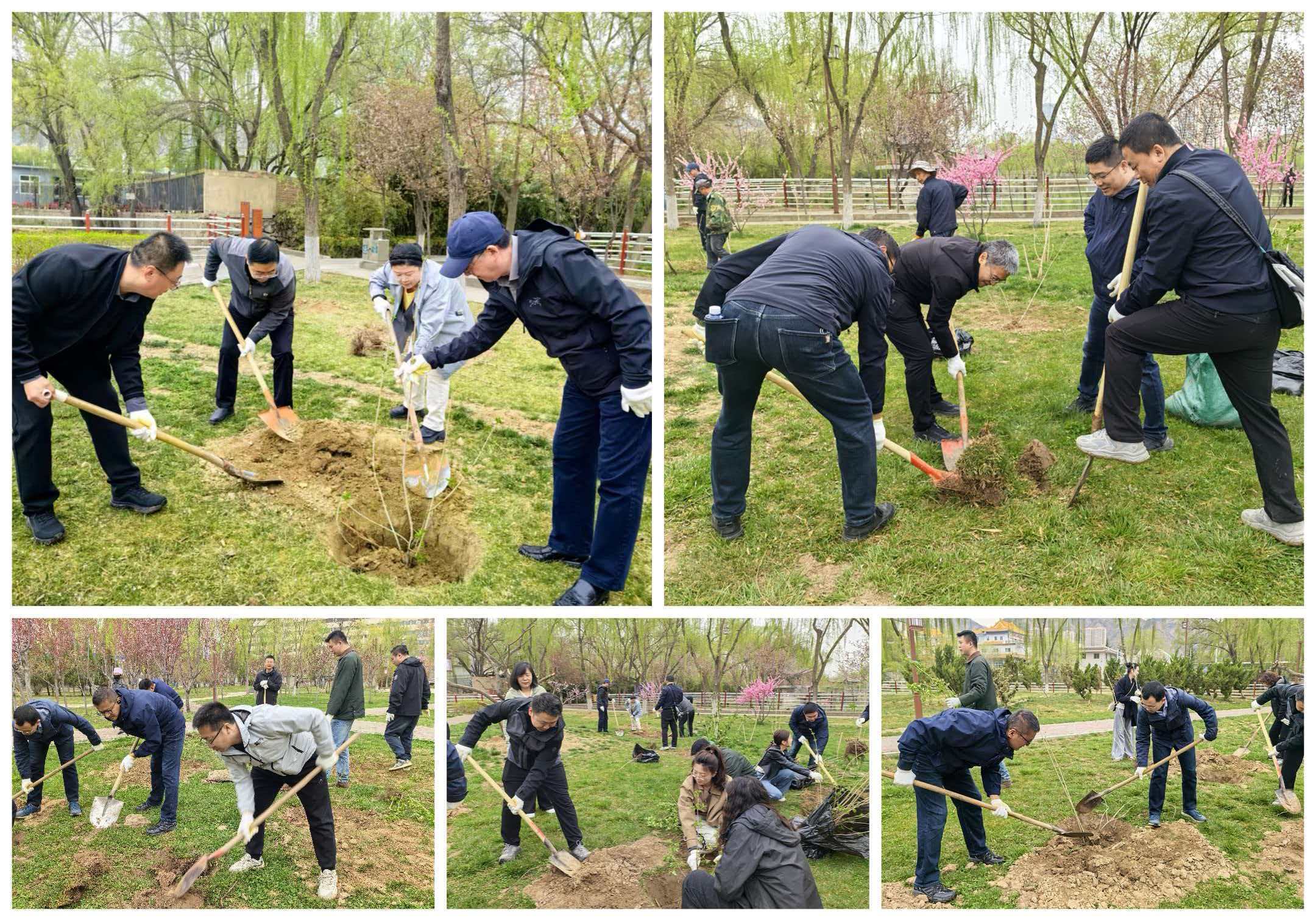 實踐環(huán)節(jié),全體人員前往蘭州義務(wù)植樹基地開展植樹活動。大家熱情高漲、分工協(xié)作,嚴(yán)格按照技術(shù)規(guī)范完成挖坑、扶苗、培土、澆灌,并親手為小樹苗掛上寄托美好祝愿與未來希望的祝??ㄆ?/span>