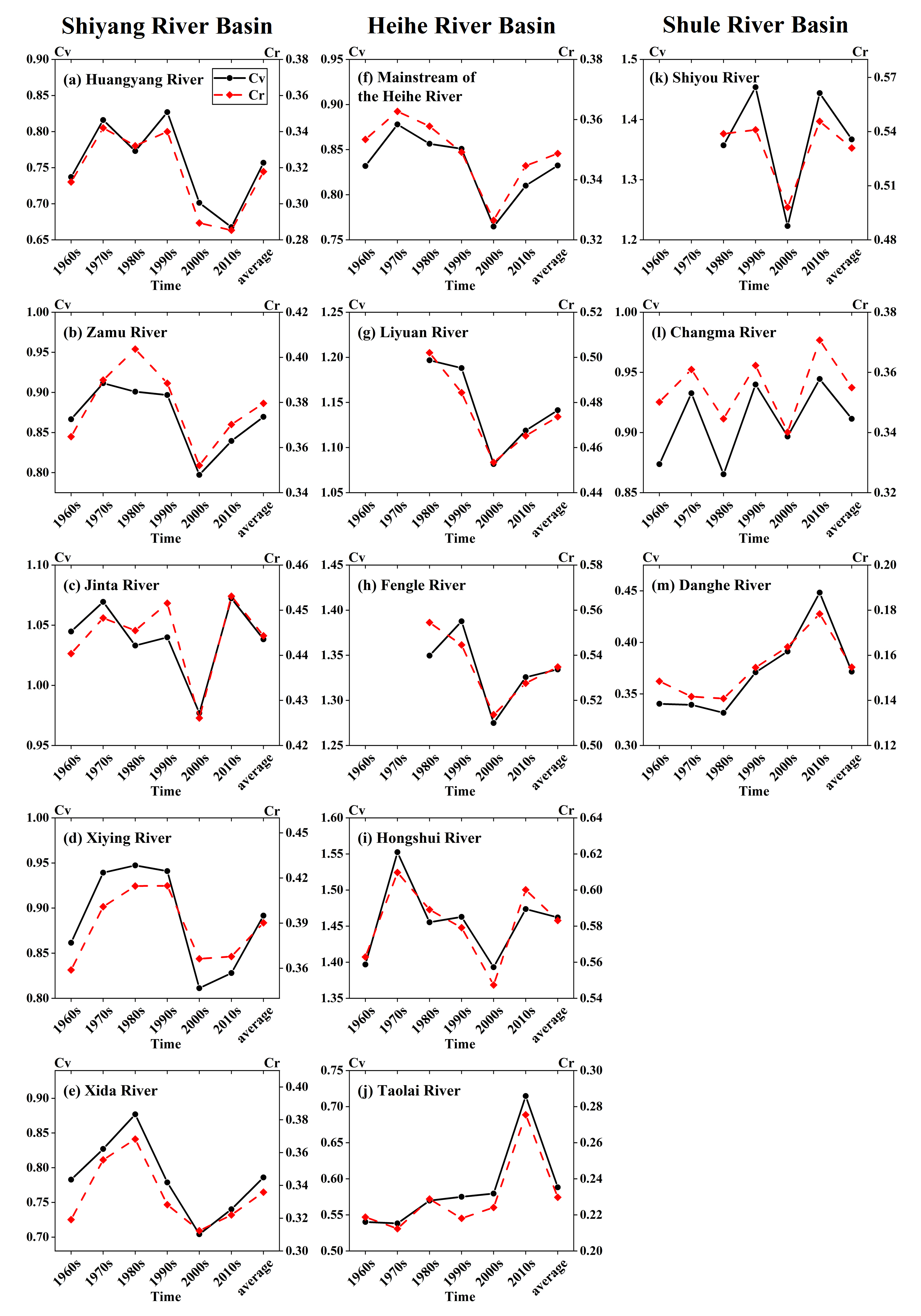 由于氣候變化、人類活動和下墊面的綜合影響,內(nèi)陸河流域出山徑流的響應(yīng)復(fù)雜多樣,年內(nèi)分配格局具有顯著的時空異質(zhì)性,部分河流枯水期徑流增加,部分河流峰值時段后移等,嚴重影響了河川徑流的發(fā)電、灌溉和生態(tài)文化價值功能,增加了水利調(diào)控工程的壓力。因此,探究出山徑流長時間序列年內(nèi)分配變化和空間差異,有助于流域水資源的規(guī)劃與管理,并為未來區(qū)域水資源的變化預(yù)測提供依據(jù)。