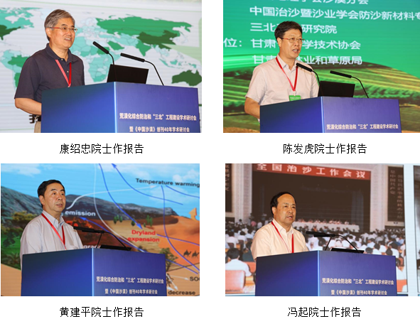 研討會(huì)以“荒漠化綜合防治和‘三北’工程建設(shè)”為主題,旨在深入學(xué)習(xí)貫徹落實(shí)習(xí)近平總書記關(guān)于加強(qiáng)荒漠化綜合防治和推進(jìn)生態(tài)工程建設(shè)重要講話精神,推動(dòng)山水林田湖草沙一體化保護(hù)和系統(tǒng)治理,總結(jié)和交流相關(guān)研究成果,促進(jìn)人與自然和諧共生。大會(huì)邀請(qǐng)了丁一匯、姚檀棟、侯立安、鄭曉靜、康紹忠、陳發(fā)虎、黃建平、馮起、方小敏、朱教君等10位院士和王濤、李新榮、楊小平、董治寶、陳亞寧、鹿化煜、屈建軍、楊文斌等8位專家作主題報(bào)告,并組織了14個(gè)分論壇的專題報(bào)告。南志標(biāo)、賴遠(yuǎn)明、楊志峰院士參會(huì)??凳啦⒉軓V超、盧琦、李廣、勾曉華、楊興國分別主持大會(huì)主題報(bào)告。與會(huì)專家學(xué)者圍繞荒漠化綜合防治和“三北”工程建設(shè)的新理念、新技術(shù),深入探討了荒漠化地區(qū)氣候變化與生態(tài)系統(tǒng)響應(yīng)、荒漠生態(tài)修復(fù)與治理、全球氣候變化對(duì)西北暖濕化趨勢(shì)的影響等前沿問題。