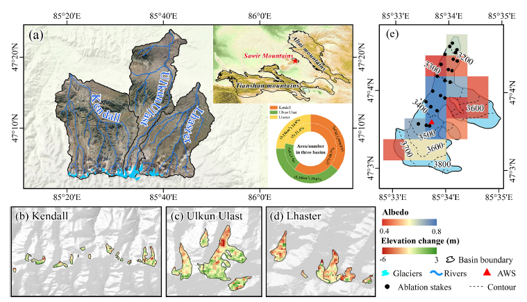 中國科學(xué)院西北生態(tài)環(huán)境資源研究院王璞玉研究員團隊依托阿爾泰山冰凍圈科學(xué)與可持續(xù)發(fā)展綜合觀測研究站,綜合運用模型模擬、衛(wèi)星遙感技術(shù)和野外觀測,系統(tǒng)分析了薩吾爾山冰川反照率變化及其與冰川消融的關(guān)系,重建了該區(qū)冰川物質(zhì)平衡序列,闡述了其與融水徑流的變化趨勢以及對河川徑流的影響。