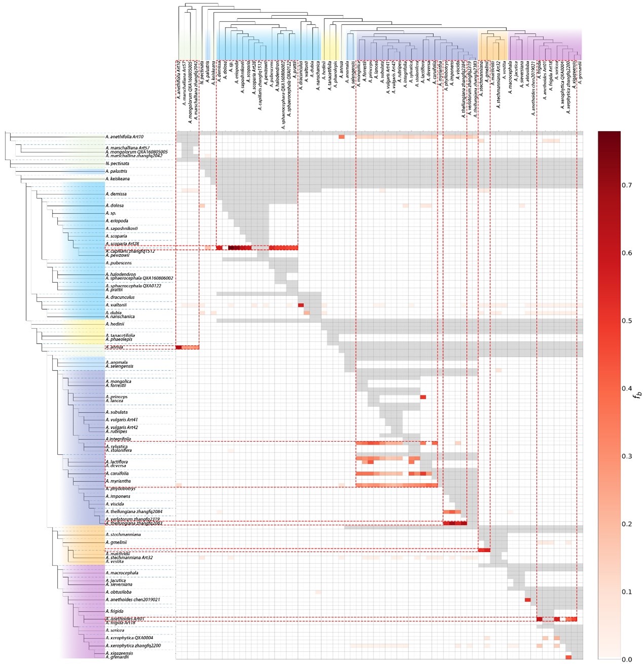 蒿屬內(nèi)物種基因漸滲情況