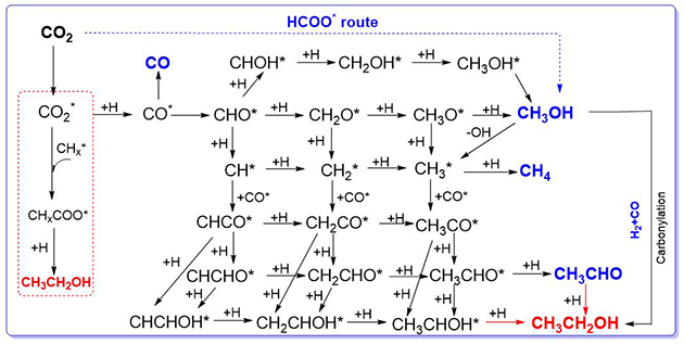 1.CO2加氫合成C2+OH的反應網絡。