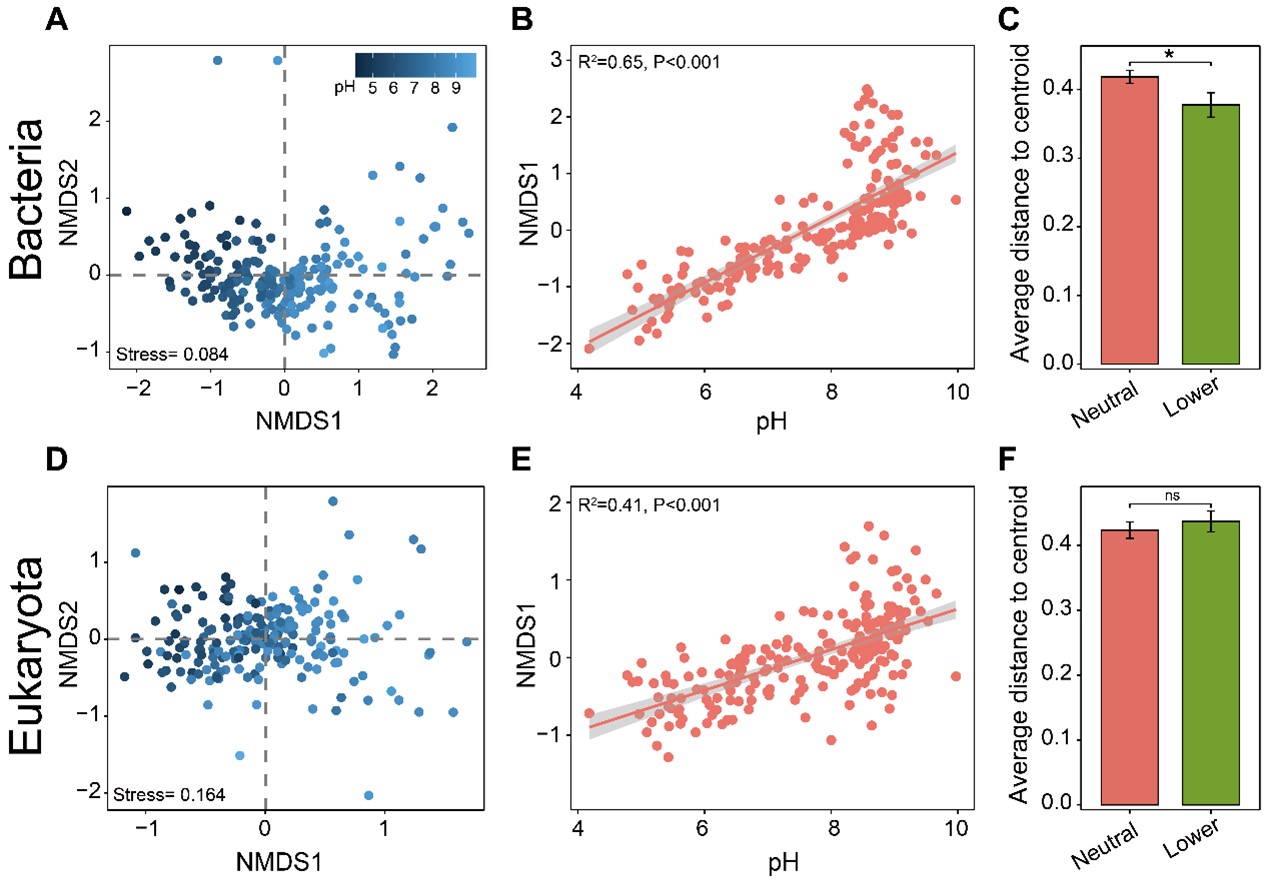 研究表明,以非度量多維尺度分析(NMDS)首軸作為土壤微生物群落組成變化的指標(biāo)具有科學(xué)依據(jù)?;贐ray-Curtis相異距離與Mantel檢驗,確定土壤pH值是影響細菌與真核生物群落組成的關(guān)鍵環(huán)境變量。偏最小二乘路徑模型(PLS-PM)進一步顯示土壤pH值對細菌群落呈強正效應(yīng),對真核生物群落則為負效應(yīng)。