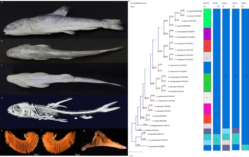 大渡裸裂尻魚(yú)多柯亞種(Schizopygopsis chengi duokeheensis)模式標(biāo)本及(a-f)及系統(tǒng)發(fā)育關(guān)系(g-h)