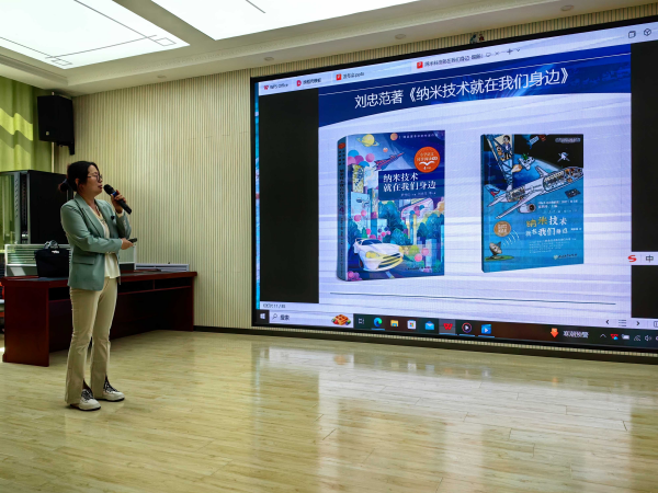 薛進,中國科普作家協(xié)會教育專委會委員,熱心科普創(chuàng)作和科學(xué)普及,出版科學(xué)繪本19冊,多次榮獲全國和中國科學(xué)院科普大獎。薛進結(jié)合小學(xué)課本中納米相關(guān)的課文為同學(xué)們科普了有趣的納米科技基本知識、應(yīng)用以及自然界和日常生活中普遍存在的納米賦予動植物的奇特行為等,吸引了小學(xué)生們的注意力,還為學(xué)校贈送了與納米科普相關(guān)的電子版課件。