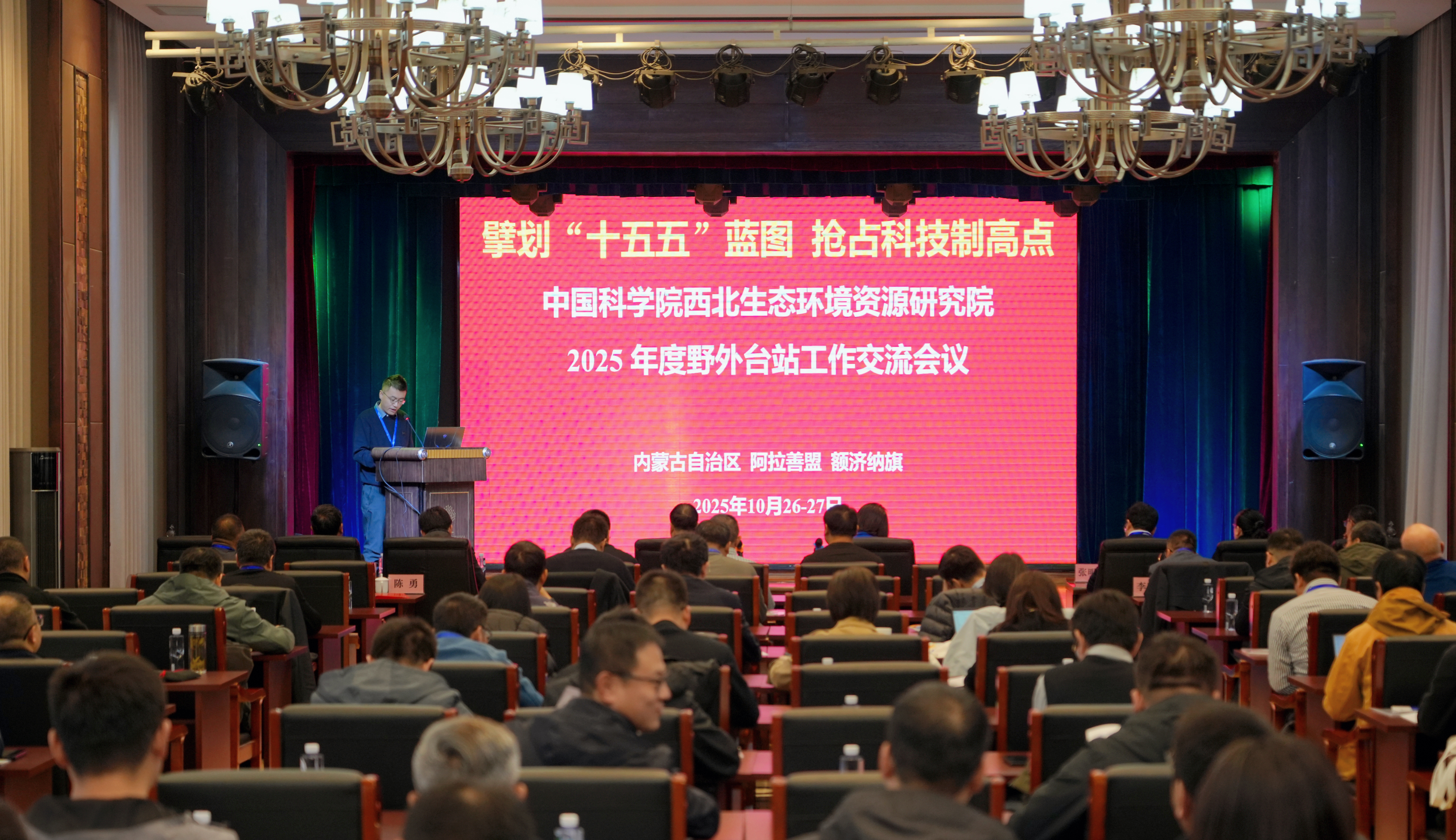 10月26日至27日,中國科學院西北生態(tài)環(huán)境資源研究院召開“擘劃‘十五五’藍圖 搶占科技制高點”2025年度野外臺站工作交流會。內(nèi)蒙古自治區(qū)阿拉善盟行政公署副盟長劉德翠,政協(xié)副主席、額濟納旗旗委書記王利軍,西北研究院院長馮起、副院長張明義,阿拉善盟科技局和林草局負責人出席會議,西北研究院野外臺站和管理部門負責人及相關(guān)科研人員80余人參加會議。馮起、張明義、科研管理處處長趙素平、阿拉善荒漠生態(tài)水文試驗研究站站長席海洋和科研管理處副處長廖杰分階段主持會議。