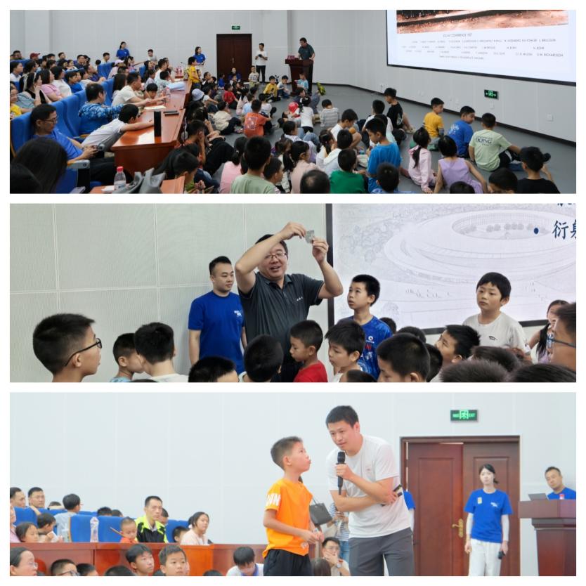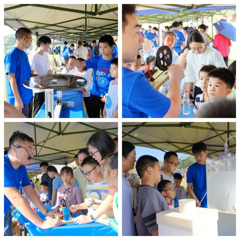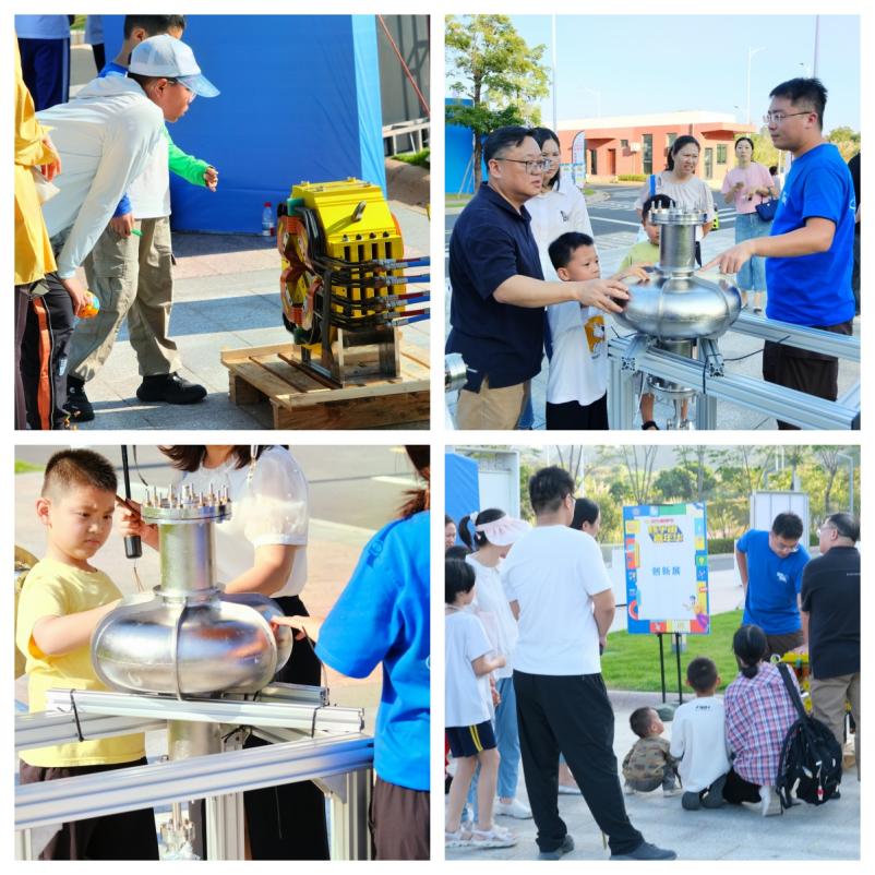 活動(dòng)形式豐富多樣,科普展廳設(shè)有強(qiáng)流重離子加速器裝置(HIAF)和加速器驅(qū)動(dòng)嬗變研究裝置(CiADS)的沙盤模型,科研人員為現(xiàn)場(chǎng)公眾詳細(xì)講解這些國家重大科技基礎(chǔ)設(shè)施的進(jìn)展。在創(chuàng)新展區(qū),展示了超緊湊旋轉(zhuǎn)束重離子治療系統(tǒng)和中國首臺(tái)碳離子治療系統(tǒng)等模型,四極磁鐵、超導(dǎo)腔等加速器實(shí)物設(shè)備也吸引了不少關(guān)注??破?qǐng)?bào)告環(huán)節(jié)中,中國科學(xué)技術(shù)大學(xué)的謝治助理研究員作了題為《追光逐日,迎接未來》的報(bào)告,介紹同步輻射領(lǐng)域的前沿知識(shí);中國科學(xué)院近代物理研究所的藍(lán)江山副研究員則以《探索微觀物質(zhì)世界的奧秘》為題,帶領(lǐng)聽眾探索粒子物理的奧秘,現(xiàn)場(chǎng)引發(fā)了熱烈提問?;?dòng)體驗(yàn)是本次活動(dòng)的亮點(diǎn)。在實(shí)驗(yàn)秀中,展示了高溫超導(dǎo)磁懸浮和核孔膜超黑材料等實(shí)驗(yàn)演示;在“粒子特工訓(xùn)練基地”,孩子們通過游戲模擬重離子在加速器中的運(yùn)動(dòng),深入理解其工作原理,特邀惠州學(xué)院附屬學(xué)校學(xué)生擔(dān)任該項(xiàng)活動(dòng)特別講解員,通過。此外,創(chuàng)工坊里,孩子們?cè)诶蠋煹闹笇?dǎo)下參與科學(xué)制作,激發(fā)了他們對(duì)科學(xué)的熱情。