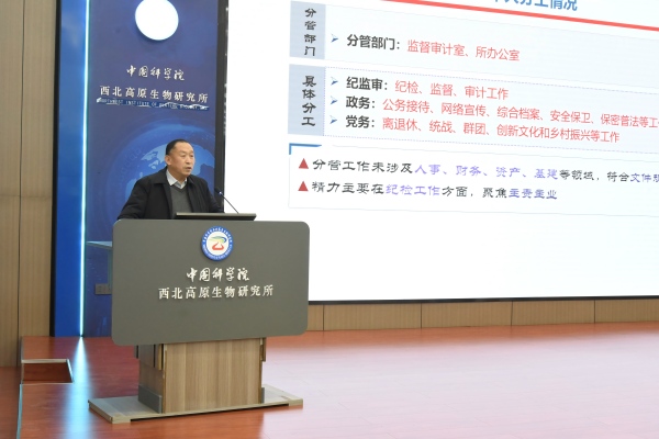陳世龍所長代表所領(lǐng)導(dǎo)班子作了題為“扎根青藏高原 聚焦高原生物 保障生態(tài)安全”的2025年度工作總結(jié)和述職報(bào)告。報(bào)告詳細(xì)闡述了“十四五”完成情況,就深入學(xué)習(xí)貫徹黨的二十屆四中全會精神,貫徹落實(shí)2025年度院工作會議精神,聚焦院黨委重大決策部署,研究所重大科研項(xiàng)目進(jìn)展、高水平科研成果產(chǎn)出等內(nèi)容進(jìn)行匯報(bào),并對2026年重點(diǎn)工作進(jìn)行部署。