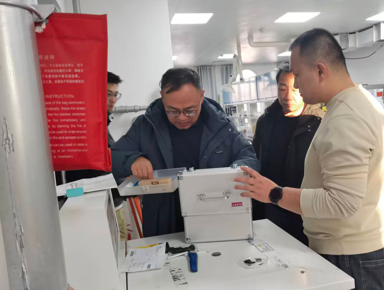 在實(shí)驗(yàn)室專項(xiàng)檢查環(huán)節(jié),檢查組重點(diǎn)核查“三高設(shè)備”以及各類實(shí)驗(yàn)儀器設(shè)備的運(yùn)行狀態(tài),細(xì)致檢查危險(xiǎn)化學(xué)品儲存、領(lǐng)用、廢棄等全流程管控落實(shí)情況,并現(xiàn)場測試通風(fēng)系統(tǒng)、應(yīng)急防護(hù)裝備的運(yùn)行有效性。針對檢查中發(fā)現(xiàn)隱患問題,檢查組當(dāng)場明確整改責(zé)任人、整改措施及完成時(shí)限,要求相關(guān)課題組立行立改、閉環(huán)管理,堅(jiān)決杜絕隱患遺留。
