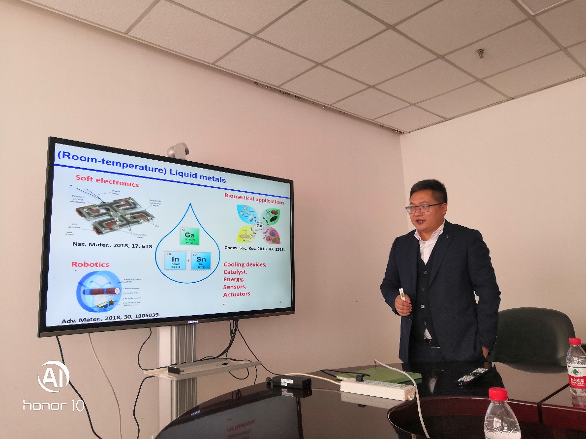 1019日,深圳大學(xué)周學(xué)昌教授應(yīng)邀到蘭州化物所進(jìn)行學(xué)術(shù)交流,并做了題為室溫液態(tài)金屬與韌性凝膠:從液滴到柔性電子的學(xué)術(shù)報告。