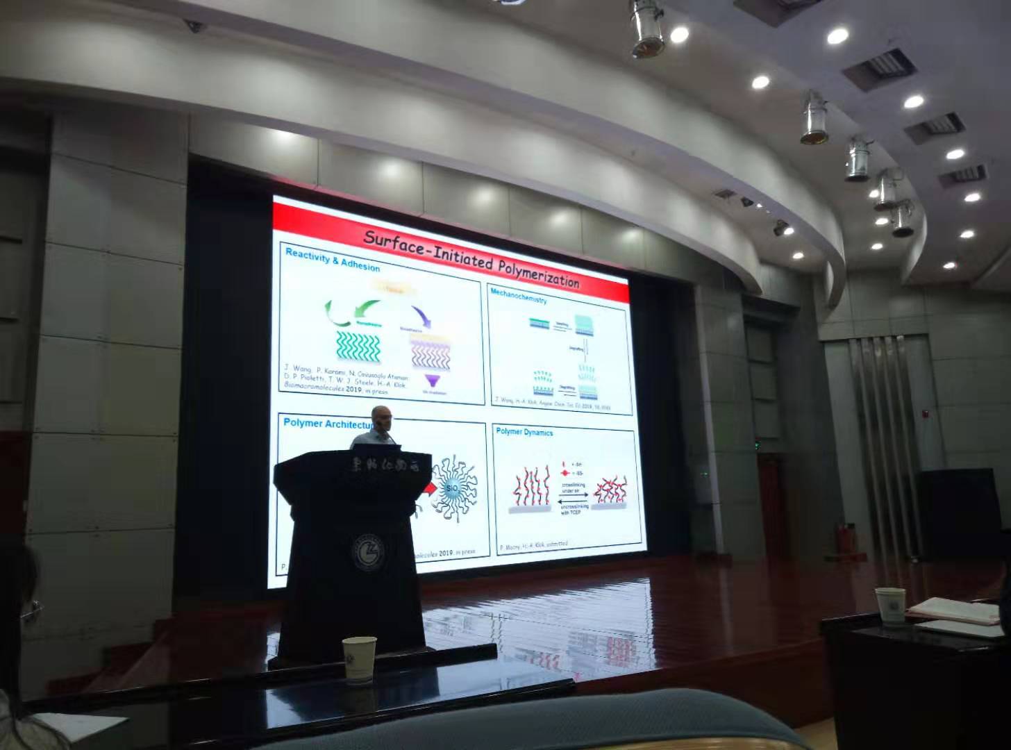 10月29日,應(yīng)固體潤滑國家重點(diǎn)實(shí)驗(yàn)室邀請,《生物大分子》副主編、瑞士洛桑聯(lián)邦理工學(xué)院Harm-Anton Klok教授來到中國科學(xué)院蘭州化學(xué)物理研究所進(jìn)行交流,并作了題為“Engineering macromolecules at interfaces using controlled radical polymerization”的報(bào)告。