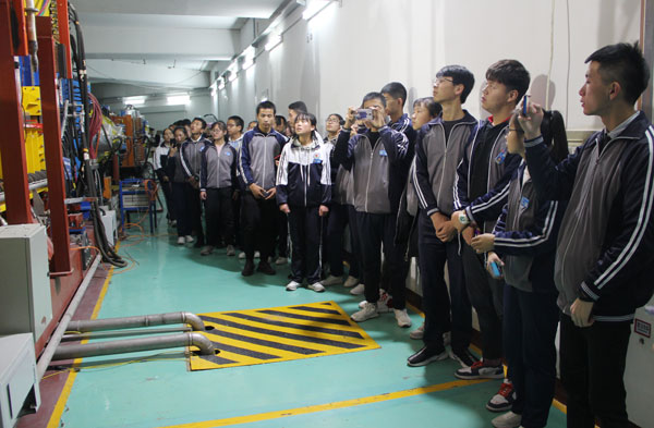 在中科院近代物理研究所,同學(xué)們參觀了蘭州重離子加速器國家實(shí)驗(yàn)室展廳,通過科研人員的講解了解到蘭州重離子加速器是我國規(guī)模最大、加速離子種類最多,能量最高的重離子研究裝置,主要技術(shù)指標(biāo)達(dá)到國際先進(jìn)水平,先后取得了以新核素合成、核質(zhì)量精確測(cè)量、重離子治癌研究等為代表的一批重要科研成果,使我國重離子物理及交叉學(xué)科研究進(jìn)入國際先進(jìn)行列。在科研人員的帶領(lǐng)下,同學(xué)們有幸親自走進(jìn)重離子加速器國家實(shí)驗(yàn)室,近距離對(duì)話科學(xué)大裝置,大家好奇的眼神,激動(dòng)的心情,溢于言表。