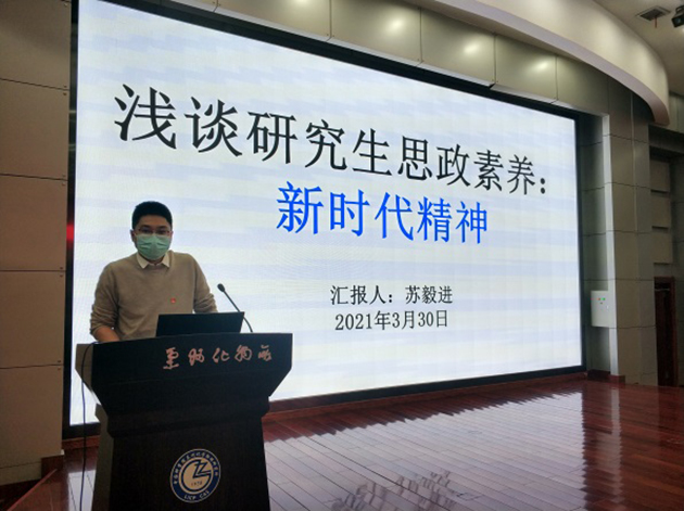 蘇毅進(jìn)研究員作了題為“淺談研究生思政素養(yǎng):新時代精神”的報告,介紹了科學(xué)家精神,分享了先進(jìn)典型案例,號召全體研究生同學(xué)用習(xí)近平新時代中國特色社會主義思想武裝頭腦,增強“四個意識”,堅定“四個自信”,堅決做到“兩個維護”,為祖國建設(shè)發(fā)展貢獻(xiàn)自己最大的力量。