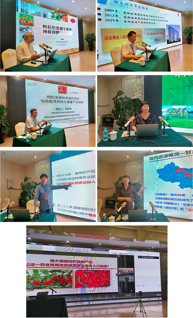 中國科學(xué)院院士、暨南大學(xué)蘇國輝教授,國家枸杞工程技術(shù)中心曹有龍研究員,蘭州化物所邸多隆研究員,中科院華南植物園王瑛研究員,中國醫(yī)學(xué)科學(xué)院藥用植物研究所徐常青研究員,蘭州大學(xué)胡芳弟教授和南京中醫(yī)藥大學(xué)郭盛副研究員分別作了題為“枸杞的保健與康養(yǎng)”“枸杞育種及新品種”“枸杞資源的系統(tǒng)性研究與功能導(dǎo)向的大健康產(chǎn)品創(chuàng)制”“枸杞重要性狀的分子機(jī)制及育種應(yīng)用”“枸杞主要病蟲害種類及其發(fā)生規(guī)律與防治現(xiàn)狀”“枸杞大健康產(chǎn)業(yè)之路及含枸杞中藥口服液的開發(fā)”“分類施策,促進(jìn)枸杞產(chǎn)業(yè)走多元化發(fā)展之路”的報(bào)告。
