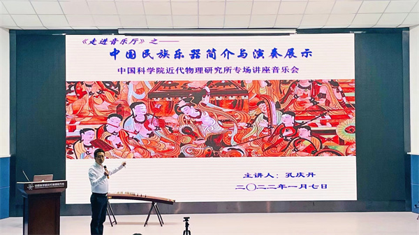 本次論壇以《<走進音樂廳>之中科院近代物理所新年民樂專場講座》為主題,報告人孔慶丹教授來自于西北師范大學音樂學院,報告人詳細介紹了包括笛、嗩吶、笙、二胡、琵琶、柳琴、阮、箏等在內(nèi)的多種傳統(tǒng)民間樂器,同時配以現(xiàn)場演奏的方式,使得大家認識欣賞樂器的同時也深入了解了各類民樂的表現(xiàn)形式以及音樂廳文化,對民樂有了更加立體、直觀的認識。報告結(jié)束,大家就如何提高個人藝術(shù)修養(yǎng)以及對青少年的音樂啟蒙教育等問題與主講人進行了熱烈的探討和交流。