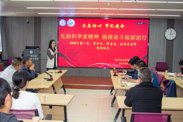光陰荏苒,歲月如歌。從風(fēng)華正茂到兩鬢飛霜,三四十載輝煌歲月,他們用奉獻(xiàn)和汗水使高原生物研究事業(yè)蓬勃發(fā)展。如今,他們即將離開(kāi)自己熱愛(ài)的工作崗位……。9月12日下午,一場(chǎng)以“弘揚(yáng)科學(xué)家精神,接續(xù)奮斗砥礪前行”為主題的退休職工榮休儀式在中國(guó)科學(xué)院西北高原生物研究所舉行,共同祝福四位榮休職工曹廣民、曹伊凡、師生波和劉亞青步入人生新階段。黨委書(shū)記、副所長(zhǎng)張景光,副所長(zhǎng)楊其恩,管理部門(mén)負(fù)責(zé)人,及生態(tài)中心在職職工和研究生50余人參加會(huì)議。會(huì)議由人事教育處副處長(zhǎng)楊紅霞和高原生態(tài)學(xué)研究中心主任徐世曉主持。