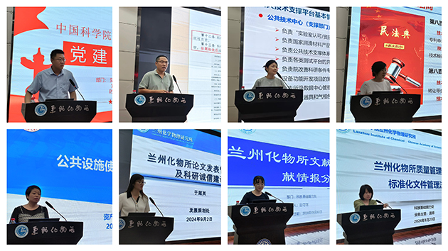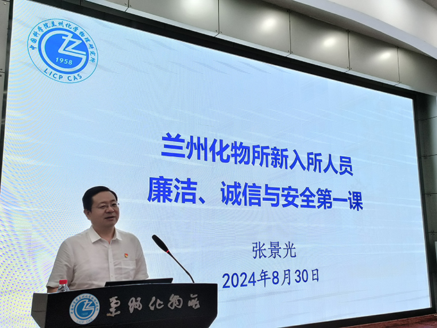 所長(zhǎng)周峰作了題為“蘭州化物所所情及科技創(chuàng)新工作”的報(bào)告,介紹了研究所歷史沿革與主要貢獻(xiàn)、科研平臺(tái)與人才隊(duì)伍、承擔(dān)任務(wù)與成果產(chǎn)出、科技合作與成果轉(zhuǎn)化、“十四五”規(guī)劃與目標(biāo)等情況。紀(jì)委書記張景光作了題為“廉潔、誠(chéng)信與安全第一課”的報(bào)告,組織學(xué)習(xí)了黨的二十屆三中全會(huì)精神和習(xí)近平總書記關(guān)于全面從嚴(yán)治黨、自我革命、科技創(chuàng)新的重要論述,傳達(dá)了中國(guó)科學(xué)院黨組2024年夏季擴(kuò)大會(huì)議和院科研誠(chéng)信會(huì)議的有關(guān)工作部署,通報(bào)了違紀(jì)違規(guī)和科研失信行為的典型案例。