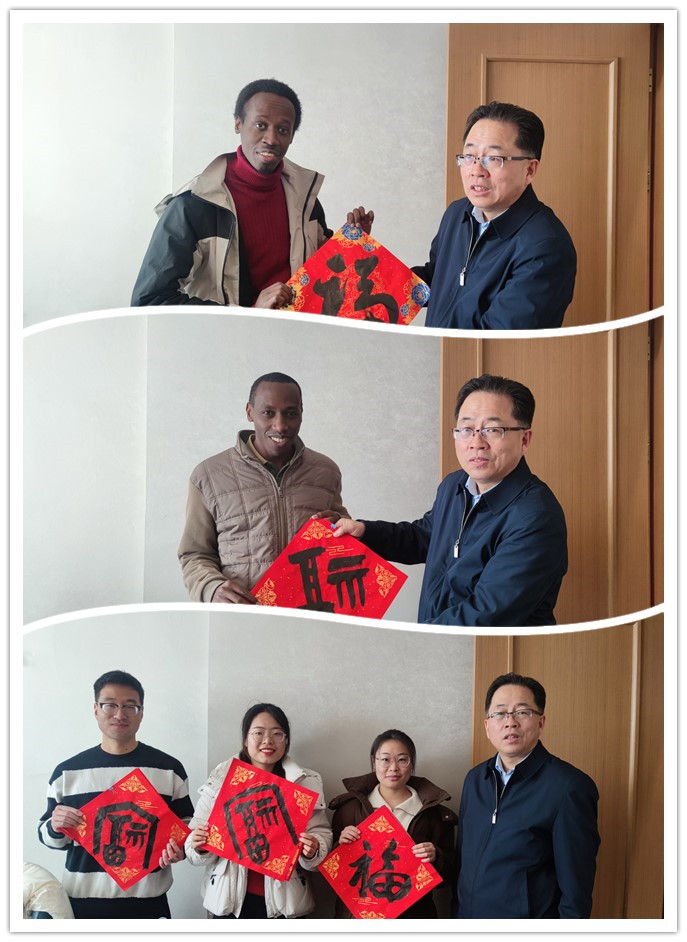 蘭州化物所黨委書記王齊華、副所長石峰了解了外籍導師在研究所的工作生活情況,聽取了對研究生教育工作的意見建議,詢問了同學們的留所原因和假期安排,叮囑同學們注意實驗室安全、宿舍用電安全和交通安全等,合理安排假期生活,并向大家送上新春祝福和春節(jié)禮包,祝福大家在研究所度過一個平安、快樂、祥和的春節(jié)。