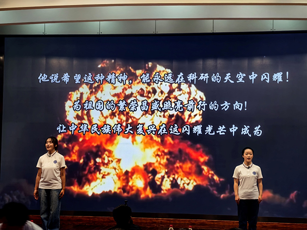 宣講會邀請了中國科學(xué)院大學(xué)“兩彈一星”精神宣講團(tuán)作了“青年挺膺擔(dān)?厚植家國情懷”的專題宣講,以“講述信仰故事、演繹時代精神、傳承文化使命”為主線,通過宣講、演繹、短劇等不同形式表演了《啟航》《執(zhí)著》《家書》《追夢者?逐夢者》《做祖國的 “鏈條”》等節(jié)目,講述5位元勛矢志報國的動人故事,帶領(lǐng)現(xiàn)場師生沉浸式聆聽了老一輩科學(xué)家的動人故事,回望了那段艱苦卓絕卻又激情燃燒的歲月,體味了老一輩科學(xué)家熱愛祖國、無私奉獻(xiàn)的家國情懷。