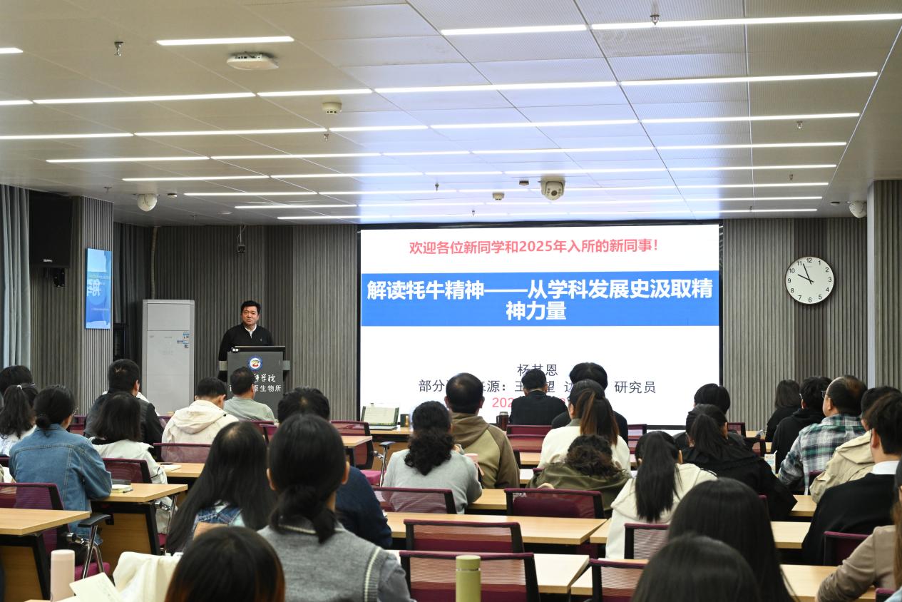 8日上午,入學(xué)典禮在莊嚴(yán)的國歌聲中拉開序幕。陳世龍首先作了“弘揚(yáng)科學(xué)精神,加強(qiáng)學(xué)風(fēng)建設(shè)”專題報(bào)告,強(qiáng)調(diào)了在科研的道路上,傳承好科學(xué)精神,遵循唯真求實(shí)、嚴(yán)謹(jǐn)本分、非所屬者不取、非原創(chuàng)者謙卑的原則和系好學(xué)術(shù)人生的第一??圩拥闹匾?。隨后,楊其恩作了“解讀牦牛精神——從學(xué)科發(fā)展史汲取精神力量”專題報(bào)告,向大家講述了“牦牛精神”蘊(yùn)含的深刻內(nèi)涵,他希望大家能夠從研究所的文化中汲取精神力量,時(shí)刻保持對(duì)科研工作的熱情和敬畏之心、求知欲和好奇心。最后,入學(xué)典禮特邀退休職工李英年研究員作了“熱愛工作 勤勞耕耘——談科學(xué)家精神”專題報(bào)告,他通過分享40多年的工作經(jīng)歷與感悟,告訴大家精神的培養(yǎng)需要關(guān)注細(xì)節(jié)、廣學(xué)博覽、在交流與思考中培養(yǎng)創(chuàng)新意識(shí),以卓然眼界、超群膽識(shí)、堅(jiān)定信念、敢天下之先。
