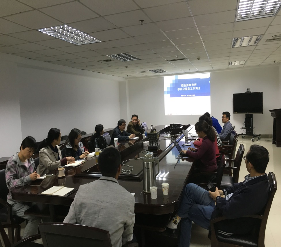 駱永明強(qiáng)調(diào)了文獻(xiàn)情報信息在科研過程中的重要性,并結(jié)合自身科研工作和海岸帶研究所的發(fā)展進(jìn)行了闡述。他肯定了由蘭州文獻(xiàn)中心學(xué)科館員與煙臺海岸帶所圖書館員共同完成的《煙臺海岸帶所近五年發(fā)文及對比機(jī)構(gòu)分析》在研究所“十二五”評估匯報中發(fā)揮了重要支撐作用,并對蘭州文獻(xiàn)中心多年來對煙臺海岸帶研究所的文獻(xiàn)情報工作支撐表示感謝。在談及研究所“十三五”期間對文獻(xiàn)情報工作的需求時,駱永明提出結(jié)合研究所開展的國際研究計劃和即將召開的學(xué)術(shù)會議開展學(xué)科情報服務(wù)的合作研究,并對知識產(chǎn)權(quán)分析、科研團(tuán)隊信息環(huán)境建設(shè)以及面向院重點實驗室的評價等工作提出了服務(wù)需求。他最后建議蘭州文獻(xiàn)中心要結(jié)合多年來的數(shù)據(jù)庫分析工作,開展對中文學(xué)術(shù)論文的影響力研究,探索公證客觀的評價方法。