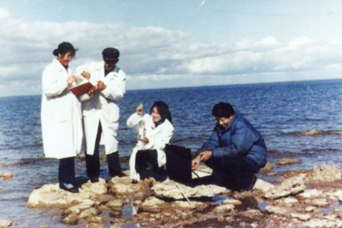 1965年高世揚(yáng)在大柴旦鹽湖邊觀察