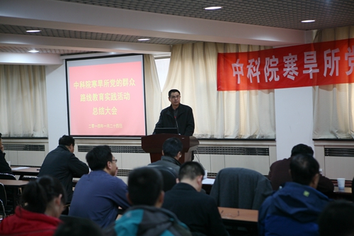 124日,寒旱所召開黨的群眾路線教育實踐活動總結會議。蘭州分院督導組組長、黨組書記、副院長謝銘,寒旱所領導班子成員、在職黨員共90人參加會議。會議由寒旱所所長馬巍主持。